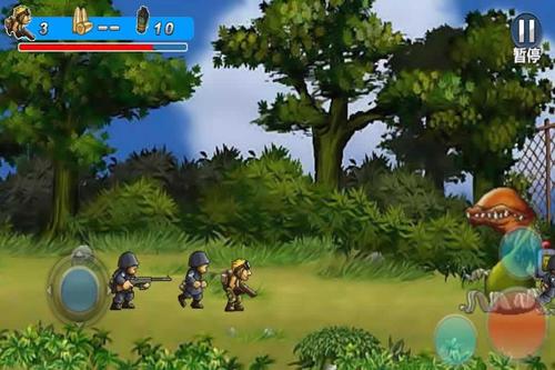 本游戏是一款2D横版枪战冒险游戏,画面音效制作优良,游戏中玩家将化身为特种兵,林弹雨中冲锋陷阵,撕破敌人的一道道防线,将敌人的基地夷为平地。你一个人能瓦解整个敌人军队吗?快来赶紧控制你的士兵,赢取战斗的胜利吧!