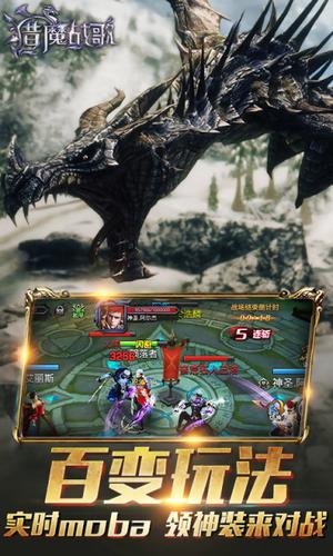 《猎魔战歌》以原创魔幻剧情为蓝本,唯美的画风还原了一个可触、会呼吸的魔幻世界。采用高精度3D动态设计,展现了多种地域风情,玩家可以在浓烈唯美的欧美魔幻宏大场景中自由冒险探索。更有多种风格的武器、时装、翅膀、坐骑,打造高颜值全身装备!展现你从来没见过的世界。游戏特色野外大地图实时PK,跨服10V10MOBA竞技,公会战领土战玩不停!更有酷炫翅膀、稀世神兵、耀眼坐骑、绝版时装等你来拿!登录即送钻石壕礼,美女客服与您相约噢。特色设计战斗:①割草式无双战斗,体验一骑当千的快感;②野外大地图设定,追求自由+爽快;养成:①童话伙伴养成+策略性援助机制;新增伙伴天赋,类猎命(可自行搭配属性)②贯穿整个游戏的猎魔等级(实力评定机制);新增魔魂,与猎魔等级挂钩(强化角色技能效果)③极致外观炫耀,个性时装+绚丽翅膀+酷炫坐骑;④萌宠,多种形象(迷你犬,迷你凤凰,迷你龙,小精灵,小恶魔),有成长率+个性技能交互:①庞大的公会交互体系(公会BOSS、公会强盗、领土战等)下周还会新增公会篝火;②以战场为核心的对抗玩法(1V1,3V3,世界BOSS,跨服MOBA);③结婚系统、师徒等交互系统核心玩法PVE——丰富多样,惊喜不断①千变万化的场景元素,帆船、天梯、时空漩涡亮瞎双眼;②独具匠心的互动设计,机关、陷阱、特殊事件惊喜连连;③不拘一格的玩法模式,清剿、盗宝、角色扮演其乐无穷;新增野外互动:野外BOSS,煞星争夺,挖宝等PVP——创新继承,超燃群战①1V1竞技:跨服挑战,段位评定,快速上分不是梦;②3V3竞技:讲究个人操作,考验团队配合,刺激形成固定队伍;③商队护送:告别单人护送,全新组队护送/劫镖玩法,呼朋唤友,互帮互助;④世界BOSS:两段模式,前段PVE比输出,后段PVP拼团队实力;⑤跨服10V10:首创跨服MOBA战场,团战配合,野区杀戮,三路推塔;⑥公会对抗:公会强盗+大型领土争夺玩法,变炮车,投炸药,开密道,拆水晶,考验公会凝聚力;===全新伙伴系统===全新伙伴天赋系统,控制免疫,伤害加成等极品天赋登场===全新宠物系统===全新宠物系统上线,Q萌宠物助你属性翻倍宠物技能震撼来袭,百分比伤害不再是梦===全新坐骑系统===凶猛异兽震撼登场,坐骑装备让你如“虎(坐骑)”添“翼(装备)”===千人团战,领土争夺===全新团战模式,千人同屏抢夺至高领土===全新MOBA战场===全新10v10MOBA战场,待你超神