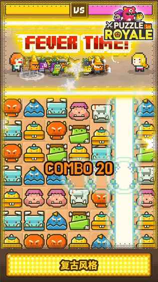 简单的游戏规则,男女老少都能轻松上手。三个相同颜色连城一线即可消除,趣味横生,百玩不厌。加入对战与成长玩法,使三消玩法更加丰富多彩,更加耐人寻味。消消乐怪兽决斗正式拉开帷幕了!!身为消消乐王国怪兽召唤师的你,被迫参加怪兽决斗大会。本次大会是因为王国的公主无比喜欢消消乐怪兽举办的活动。据说在大会中获胜的怪兽召唤师将有幸与美丽的公主喜结良缘...这又有什么呢?!不管怎样,既然大会已经开始了,那就大展身手,展现你的消消乐实力吧!本款游戏的五大特点-传统三消玩法:三个相同颜色连城一线,还有连续消除奖励。-怪兽召唤决斗:每次消除都会召唤强力怪兽,与对手的怪兽决斗。-复古风格:优美的像素艺术构造出梦幻怪兽消消乐。-怪兽升级:收集怪兽卡片并升级,可以打造更强力的怪兽。-联赛系统:战胜其他消消乐怪兽召唤师,晋级更高级联赛。怪兽决斗与联赛系统使三消玩法更加消消乐。*访问权限玩游戏(游戏不会运行,如果没有授权)-在外部存储上安装游戏所需的授权。社区:https://game.nanoo.so/puzzleroyalecn支持:https://game.nanoo.so/puzzleroyalecn/customer