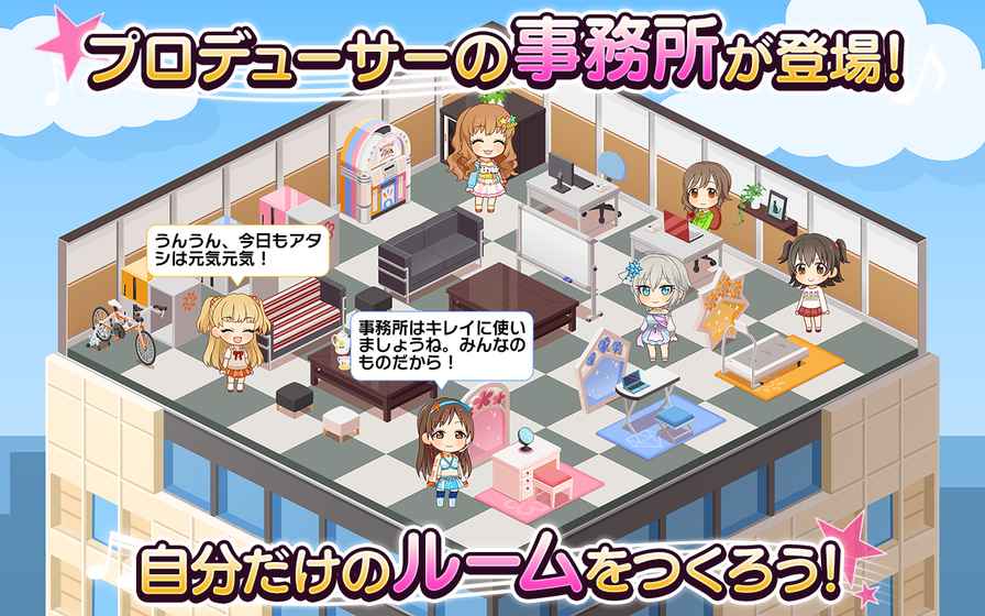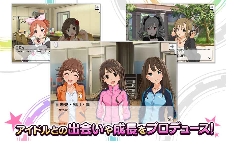 【日本人气声优上坂堇、细谷佳正签名抽选活动火热进行中!!!】【全城首发】“偶像大师灰姑娘女孩”终于推出了音游了!初期收录曲20曲以上!登场偶像50人以上!简单操作的音游编成属于自己的组合,享受“LIVE”!打歌画面将以全3D演绎!而且,本作还收录了游戏主题曲“とどけ!アイドル”创造属于你的事务所通过布置各种不同的装饰物,创造出属于你自己的“房间”装饰道具高达100种以上!吸引更多偶像女孩子来你的事务所玩吧!和偶像的交流通过“交流”来发现偶像和制定成长计划!通过故事模式和偶像交流来更加了解偶像!当然偶像们可是全程搭载语音!偶像育成通过“课程”来提高偶像的等级通过“特训”来提高偶像的魅力吧!TV动画中登场的歌曲也有2015年1月放送的TV动画《偶像大师灰姑娘女孩》中登场的歌曲也会在本作中登场!今后会继续追加偶像和歌曲游戏预定每个月都会追加新偶像和歌曲!