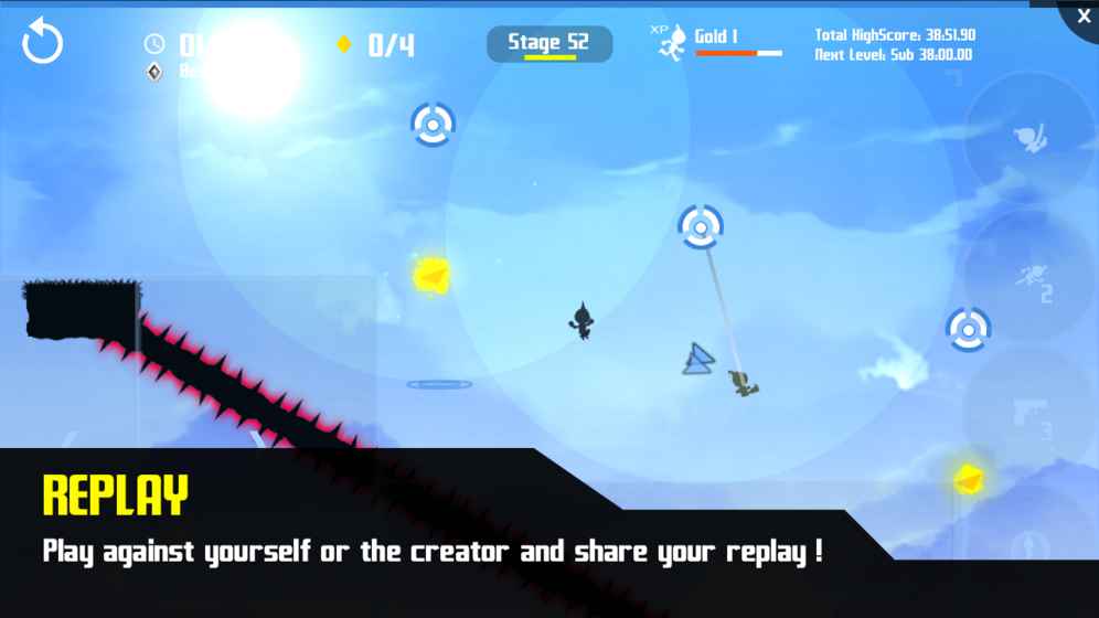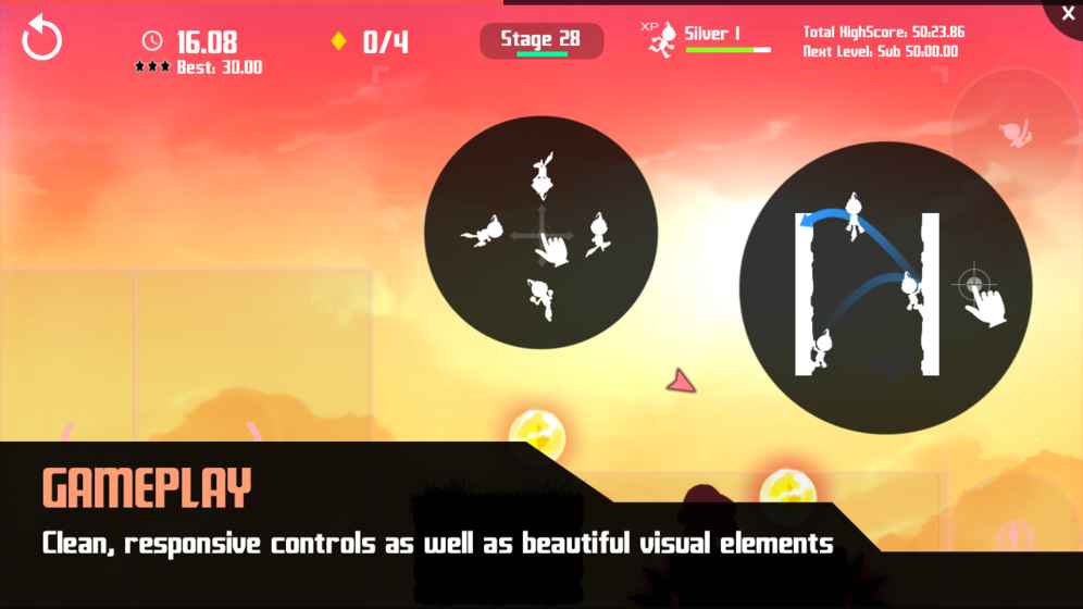 极速挑战是一款独特的竞速平台跳跃技巧类游戏,有着简单的操作和多达160个关卡。并且有在线排行榜可与其他玩家竞争。内容:*140个越来越有挑战性的关卡,每关需要在30秒内完成。*整洁美观易用的按键分布*利用鬼影功能不断挑战自己的速度*和朋友分享游戏录像*自定义按键布局*计时关卡-收集所有目标,在最短的时间内*速度关卡-你可以在2分钟内跑多远?*能量盾关卡-训练反应,及时开启护盾保护自己!*捕捉关卡-捕捉要逃走的目标*多人模式-尚未开放,正在开发中。控制:左侧按钮控制左右移动,点击右侧跳跃按钮跳跃,再次点击触发二段跳。当人物在空中是,向上,向下,向左或向右划动屏幕,可在空中攻击,打破有护盾的目标。绳按钮可以创建一个绳子,帮助你穿越危险的地形。使用护盾以避免被电流击中!您还可以使用激光破坏远处的目标和幻象。解锁XP级别的关卡后,还可使用小范围瞬移。这些能力为游戏增加了多维度的行动方式,并且为在最短时间内完成关卡提供了不同的方法。素材支持:音乐由Ozzed(许可CC-BY3.0)-ozzed.net音乐由埃里克·斯基夫(许可CC-BY3.0)-ericskiff.com