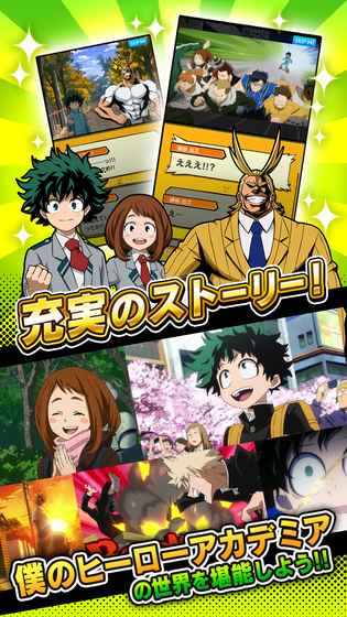 本作是一款以人气动画《我的英雄学院》为基础制作的动作手游。从已公开的画面来看,游戏采用了Q版的3D战斗画面,玩家只需点击即可发动攻击和「个性」的简单操作,而且游戏还支援和朋友一起共斗闯关。「僕のヒーローアカデミア」のアプリがついに登場!タップでSMASH!!目指せNo.1ヒーロー!!簡単だけどクセになるタップアクションタップ操作で爽快ぶっとばしアクション!1タップで“個性”が発動!一撃で状況を変えろ!数々の名シーンをスマホで追体験ストーリモードで感動の名場面を追体験!イベントモードではバトルに使えるキャラクターやサイドキックをゲットできる。最大4人の仲間と一緒に、仲良く共闘マルチプレイで仲間と共に数々の強敵に挑戦!1人では倒せなくても、仲間と協力すれば百人力!キャラクター育成好きなキャラクターを育成して、最高のヒーローを目指せ!キャラクターにガジェットをセットする事で様々なサポート効果が発動!雄英の先生達と特訓!キャラクターやガジェットなどの報酬を手に入れろ!-----------------------------------【推奨OSバージョン】Android4.4以上-----------------------------------【免責事項】(1)推奨機種および、推奨OSバージョン以外での動作につきましては、サポートの対象外となります。(2)お客様のご利用状況により、推奨機種であっても動作が不安定な場合があります。(3)推奨OSバージョンに関して、「Android4.4以上」と記載している場合でも、最新バージョンへ必ずしも対応しているものではございません。【最新の推奨機種や、その他のお問合わせについて】https://bnfaq.channel.or.jp/contact/faq_list/1856-----------------------------------【本製品に関するお問い合わせはこちら】http://bnfaq.channel.or.jp/contact【バンダイナムコエンターテインメント公式サイト】http://bandainamcoent.co.jp/-----------------------------------©堀越耕平/集英社?僕のヒーローアカデミア制作委員会©2017BANDAINAMCOEntertainmentInc.本アプリケーションは、権利者の正式な許諾を得て配信しています。