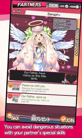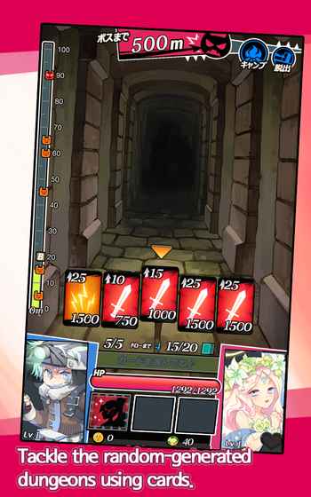 美少女卡牌RPG!前往地下城尋找美少女夥伴,攜手擊敗BOSS!?能在地下城中尋求邂逅嗎?-可以尋找美少女夥伴一起成長。?使用隨機產生的卡牌到地下城中探險吧!-卡牌真的是隨機產生,但必須擬定計畫。?使用攻擊、迴避、反擊、集中卡牌展開有策略的戰鬥!-卡牌的限制是死的,但策略的選擇是活的。?玩家的職業技能帶來戰略上的變革!-雖然初始職業是探險家,但深入地下城探險就能選擇其他職業。?使用夥伴的特殊技能擺脫危機!-夥伴也有能助您一臂之力的技能。?只要獲得夥伴的好感,夥伴就會變強!-全世界都一樣吧?哪有不喜歡禮物的美少女呢?※卡牌少女是遊戲數據存儲在移動設備上的單一遊戲。請注意,刪除時無法恢復數據。