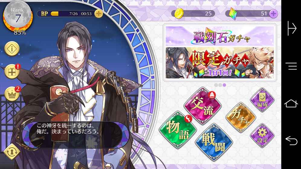 所有武將,為我(你)癡狂。個性豐富的吸血鬼和狼人武將,為了爭奪天下以「我」為中心展開激戰戰國戀愛幻想劇「戰刻夜想曲」================被你的血液牽引,與眾多武將們交織的傳記即將開始□故事□青天與白雲…毫無變哲的平凡一日「請助我們一臂之力」語畢,一陣光茫環繞下一秒回過神來,卻發現已置身於彷彿日本戰國時代的異界吸血鬼和狼人武將們舉兵企圖一統天下,人稱【神牙】的世界□點綴傳奇的豪華配音陣□荒牧慶彦/梅原裕一郎/逢坂良太/岡本信彦/興津和幸/柿原徹也/北村諒/木村良平/小西克幸/小林裕介/佐々木喜英/佐藤拓也/島﨑信長/武内 駿輔/鳥海浩輔/中島ヨシキ/西山宏太朗/花江夏樹/前野智昭/緑川光/村瀬歩/森川智之/森久保祥太郎 /森田成一/八代拓/安元洋貴/山下大輝/山本一慶 他 (五十音順)□主線故事全程語音!□【和那一軍的那一位武將談戀愛皆由你決定!】各軍勢皆有以全程語音展開的獨自主線!從任一軍勢開始都OK。盡情享受你所在意的軍勢和武將的故事吧!□戰鬥□【簡單好上手的自動戰鬥】完全沒有任何困難的操作!把一切交給武將們享受戰局的流暢展開。可以自由超越陣營的限制隨心所欲編成部隊,選好喜歡的武將,準備出擊!討伐蔓延於神牙的厄魔!【能夠治癒受傷武將的只有你】你擁有能夠治療武將的不可思議能力。戰鬥中,受傷的武將可能會尋求你的療癒…。至於同不同意,一切都由你決定!□交流&育成□【你越是熱衷,武將們就會變得越強】把在戰鬥中獲得的物品(魔結晶)送給中意的武將,細心培育羈絆吧!每當親愛度上昇時,只屬於兩人的時間就會到來…。□覺醒□【吸血事件皆伴有美麗的CG!】當親愛度到達MAX的時候吸血事件(覺醒劇情)就會解禁!平日投身於戰爭的武將們,只讓你看到的另一面妖艷的姿色和甘美的蜜語讓人臉紅心跳…!【用你的血液解放武將們真正的面貌!】武將們吸了你的血之後,原本的力量就會覺醒。不但能力會強化,外貌也會大幅轉變。其華麗的勇姿不可不見…!□□□□□□□□□?建議OS版本?iOS8.0以上※就算符合建議OS,依據各人的環境仍有無法正常執行的可能性。請事先留意。?聯繫我們?關於『戰刻夜想曲』的各種問題請參考下記網頁。http://senbura.jp/faq/※網頁內容僅以日文提供。請事先留意。【已確定可正常運作的裝置和服務條款】詳情請參考下列網址FAQhttp://senbura.jp/faq服務條款http://senbura.jp/agreement?網站?http://senbura.jp/?Twitter?https://twitter.com/senbura_info□□□□□□□□□※遊戲內語言僅以日文提供。請事先留意。©2017MarvelousInc./KADOKAWA/IDEAFACTORY