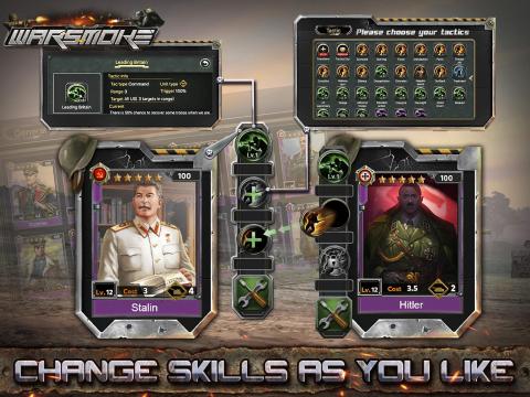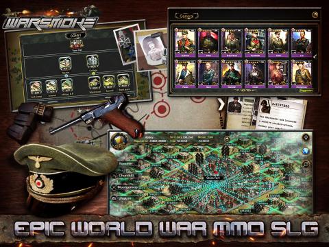 WarsmokeisaworldwarthemedMMOSLGgamethatbringsyoubacktothetimeofepicworldwars.Youwillplaytheroleofcommanderinconquest,gatheringallsortsofresourcestoleadyourpowerfultroops,whileunlockingfamousworldwargenerals!Noscripts,nosetmode,orfixedstrategies.Fateisinyourhandsanditdependsoneverychoiceyoumake!Putasidethehistorybookandcreateyourownlegendarystory!DOWHATHISTORYCANNOTCollectvariousgeneralsfromthetwohistoricworldwarsandcommandthemtoconquerthelandsthatliebeforeyou!Nomatterwhatnationyouhailfrom,youhavethechancetorewritehistoryandruletheworldCONQUERWITHREALSTRATEGYTheconquestoftheworldbeginswithitsfirstterritory.TherearenumerousterritoriesformingtheEuropeancontinent,providingabundantresourcesandanoptimalpathofattack!Youmustexpandyourreachtoyourenemy’sborderbeforeyoucanlaunchanattack.Seizethemomentandcapitalizeontheproperstrategiestosuccessfullyconqueryourenemy.CHANGEANDAPPLYWHATEVERYOULIKEYoumustcatcheverychanceandopportunityonthebattlefield–adjustingandapplyingtheoptimaltacticatthecorrecttime!InWarsmoke,youcanbuildadefenselinetowithstandenemyforces,sendrecontroopstodistracttheopponent,andfullyapplythevariousstrategiesinordertoachievevictory!COMMANDYOURALLIESFORTRIUMPHFromconqueringthevalleyssurroundingyourcitytosparringinanationvsnationbattle,bethecrucialroleofthelegioncommander!Theturnsofattacks,thetrooparrangement,andthevarioustargetsofconquests-allaredeterminedbyyourpersonalstrategyandyourartofcommand.Nowleadyouralliesforhonor!COLLECTALLWORLDWARGENERALSCloseyoureyesandimaginetheinfamousHitlerandStalinservinginyourarmy.AllofthisandmorewillbepossibleinWarsmoke!Unlockandcollect300+famouscommandersfromWWIandWWII,andarrangethemasyouwishtoforgeyourarmywithultimatestrengthandpower!Oncethewarsmokehasdispersed,willyoubethelastonestanding?FindthesoldierinyouinWarsmoke!