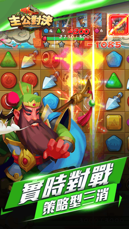 回合制三消對戰遊戲,和全球玩家來一場即時對戰!只要縱向或橫向湊齊三個同樣的元素即可消除,儘快的收集魔法,釋放一個接一個的錦囊來攻擊對方吧!或者直接消除寶劍和對方硬懟一波。你也可以過關斬將,挑戰所有的三國名將,看看誰才是三國第一戰神!【遊戲特色】·即時挑戰全服玩家,向巔峰競技場進發·一朝獲得,永久可用,沒有升級的煩惱·過關斬將,挑戰三國歷史上叱吒風雲的人物,贏取豐厚的獎勵·擊敗對手獲得獎勵,不斷收集各具特色的錦囊和強大的珍寶·打造專屬於自己的戰略套路,贏取每一場戰鬥而勝利修復了部分文字顯示異常問題