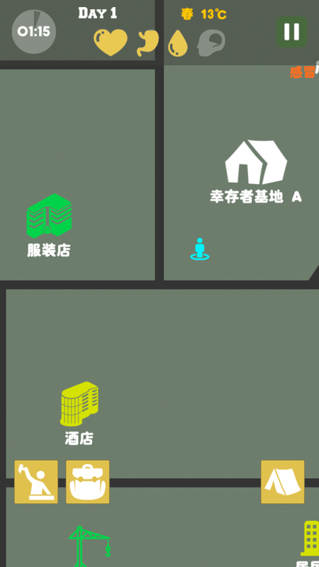 末日生存:幸存者求生之路是一款免费的末日僵尸题材生存策略游戏,所有幸存者的目标只有一个:活下去,并且尽可能的猎杀僵尸。一场致命的病毒已经把这座城市变成了死城,你的敌人不仅仅有僵尸,还有为了生存的掠夺者。在这个活死人僵尸肆虐的末日里,你只能相信你自己。末世有很多可以威胁到你生命的因素,缺少食物、缺少防护、缺少武器、缺少药物都增加了生存的难度。感冒发烧、中毒流血、虚弱晕眩等负面状态都可以造成你的死亡,时刻保持一个精神饱满的状态可以抵御很多疾病。如果你想好好的活着,请参考以下建议:*量力而行探索地图时请根据你的武器和装备来挑选适当等级的地图,千万不要盲目的进行资源探索,否则末世会教会你什么叫做生命只有一条。*慎重的选择你的职业不同的职业有不同的特点,在末世实用的生存技能最重要。厨师在烹饪时可以获得更多的成品。工人在拆卸资源时可以获得更多的物资;医生制作药品可以获得更多的成品,并且在使用药物时效果更好。消防员自带消防服,并且搜索物资可以获得更多物资;警察更精通武器操作,并自带一把武器;程序员在制作装备时可以节省材料;*时刻关注你的状态保持一个健康的身体状态可以避免生病,在末世再小的疾病也可以要了你的命,如果搜索物资时发现药物千万不要放过,药物在末世可以决定你生命的长短,时刻保持一个精神饱满的状态可以抵御很多疾病。*制作食物在末世食物至关重要,食物决定了你在末世可以存活多久,所以在末世掌握烹饪技巧可以让你活的久一点。煮方便面带来的能量远超过干吃方便面,所以尽可能的展示你的烹饪技巧吧。*制作武器装备想要在末世生存,你要学会自己制作武器装备,来防御和猎杀僵尸,否则你将在末世寸步难行。使用不同的武器来猎杀不同射程内的敌人,武器可以很大程度提升你在末世的生存几率。*关注温度一年四季温度变化会很明显,早晚温差也很大,提前准备御寒衣物很重要,否则寒冷会使你感冒。*收集地图碎片如果你想找到没有被其他人发现的模式前的物资仓库,就需要收集地图碎片,兑换完整的地图后就会显示隐藏的地图。失败往往是黎明前的黑暗,继之而出现的就是成功的朝霞。——霍奇斯生命的意义在于自强不息,让我们向在末世顽强生存的幸存者们致敬!