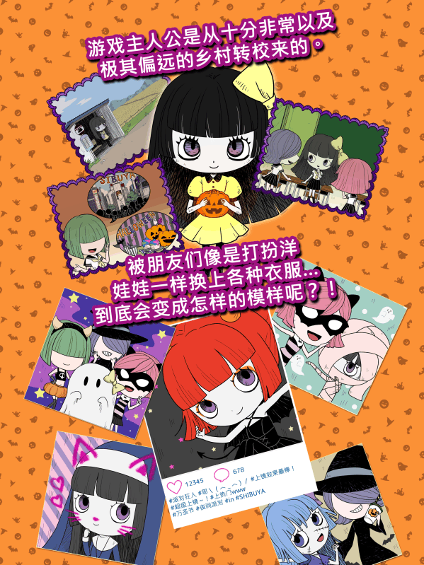 这款游戏是日语翻译版本。游戏主人公是从十分非常以及极其偏远的乡村转校来的。来到东京后,我原本的担心是多余的,很快就融入同学中…还被邀请去市中心SHIBUYA的万圣节派对!万圣节和派对都是生平第一次!被朋友们像是打扮洋娃娃一样换上各种衣服…到底会变成怎样的模样呢?!“万圣节”是外来文化中被过分曲解,改变得面目全非的节日。本游戏采用轻松幽默,略加调侃的风格,是一款魔幻小游戏,敬请期待。[来自作者的问候]本游戏是2014年9月当时作者还在公司供职时期策划、撰写、制作的,截至2017年8月结束公开。这次机缘巧合,由LadyWizard重新改写※。在此表示感谢。※改写了游戏脚本,追加并重新加工图片,更改了UI和系统。发布