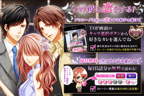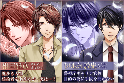 「私は…人を殺しているの?」記憶を失ったアナタに近づく男たち。優しくしてくれる刑事は、信じていい人?婚約者を名乗る男は…?衝撃のサスペンス?ラブストーリー!ミステリアス、クール、天然などのイケメンが登場するサスペンスドラマ型の人気無料女性向け恋愛シミュレーションゲームです。他の恋愛ストーリーゲームと違って、ミッションなし!毎日5話分ストーリー無料で読める課金なし(無課金)の恋愛ゲーム?乙女ゲーム(乙ゲー)。◆違法レンアイストーリー◆雨の中、倒れていたアナタを助けてくれた刑事。誠実な彼に惹かれていく一方、記憶を失ったアナタが唯一思い出したのは、連続殺人事件の殺害現場の光景だった――失われた記憶と殺人事件との関係は?!◆違法レンアイキャラクター紹介◆?能勢裕樹東署の熱血刑事優しくて真面目で誠実?相田雅彦謎多き人物婚約者を名乗るが、実は…??伊地知敦史警視庁キャリア官僚目的の為に手段を問わない?尾賀竜太郎能勢の後輩頭脳明晰だが、実は…??天野忠然伊地知の部下公安課の刑事だが、ドジで天然◆こんな方にオススメ◆?ドS、俺様、クール、ミステリアス、天然なイケメンとサスペンスドラマのようなラブストーリーがしたい?イケメンと禁断の恋、運命の恋をしてみたい?無課金、課金なし、全部無料でラブストーリーや恋愛ノベルを読みたい?運命の人と運命の恋をしたい?イケメンに囲まれる戦国、大奥、幕末、王宮のような世界感のラブストーリーゲームが好き?幼なじみが肉食系イケメンの乙ゲーがしたい?秘密のオフィスラブでドS、俺様な男性から大人の誘惑をされたい?社長、御曹司、セレブ、王子様からプロポーズされて婚約指輪をもらいたい?人気無料の女性向け恋愛ゲームで運命の恋をしたい?普段からダミヘをしてフルボイスの女性向け恋愛ゲームや乙女ゲーム(乙ゲー)を楽しんでいる?トキメキや胸キュンできる刺激的な恋愛ゲームを求めている恋ゲー好き女性?恋愛小説やライトノベル、恋愛ノベル、携帯小説が好き?オフィスラブという禁断の恋に憧れている?年上、年下あらゆるイケメン男性に囲まれて逆ハーレム状態の女性向け恋愛シミュレーションゲームを探してる?恋愛漫画、少女漫画、恋愛小説、携帯小説等とにかく乙女系の恋愛ドラマアプリを探してる?疑似恋愛でいいから彼氏、旦那、婚約者を探してる?ドS、俺様、ミステリアス、セクシーなイケメンと結婚できる女性向け結婚ゲームを探してる?bl、ボーイズラブでも大人向けの刺激的な恋愛ゲームが大好き?カリスマ男子、セレブ、王子様、プリンス、社長、御曹司と非日常的な恋愛体験をしたい?アラサー女子向けの大人の恋愛ゲームを探してる?幼なじみと秘密の禁断の恋をしたい?女性向け恋愛ストーリーゲームや恋愛シュミレーションゲームが好き?ドS、クーデレ、ツンデレ、俺様、セクシー、天然、クール、ミステリアス等のイケメンに囲まれ胸キュンしたい?ときめくキスができる甘い恋愛ゲームを探してる?乙女系の男性声優の声付き恋愛シュミレーションゲームを探してる?運命の恋や禁断の恋など恋物語が好き?ミッションなし無課金でも楽しめるゲーム、絵がカッコいい恋愛シミュレーションゲームを探してる?執事や公爵に囲まれてプリンセスやお姫様気分を味わいシンデレラのような恋ができる恋アプリを探してる?人気で無料の読み放題の恋愛小説や恋愛漫画を探してる?恋愛系、乙女系コミックが好き?声付きの恋愛ラブストーリーゲームや恋愛ゲームを探してる?甘く刺激的なキスができる刺激的な恋愛ゲームを探してる?恋愛ストーリーゲームのような感動するロマンチックなプロポーズをされたい?恋愛ドラマアプリ、ラノベ、少女漫画、恋愛漫画、恋愛映画が好き?イケメンに囲まれた逆ハーレムの乙ゲーや乙女ゲームを探してる?胸キュンしたい女の子の為の女子ゲー(女子ゲーム)を探してる?ボーイフレンド、彼氏、婚約者、旦那が欲しい?セレブ社長や御曹司と恋愛ゴシップニュースで騒がれたい?恋ゲー、乙ゲーでボルテージMAXになる?人気男性声優の声付きフルボイスの乙ゲーを探してる?セクシーな大人向け恋愛ストーリーゲームを探してる?壁ドンや顎クイ等のドキドキシチュエーションに憧れている?王室や宮廷等の世界感の大人向け恋愛ゲームが好き?年下のイケメン美少年が出てくる学園もの恋ゲーを探してる?関西弁クール美形男子に告白されたい?結婚する前は、同居、同棲、婚約したい?絵がカッコいい恋愛シミュレーションゲームを探してる?刺激的なデート気分を味わえる大人の恋愛ゲームを探してる?乙女ゲームでドラマチックな恋愛ストーリーを体験したい?とにかく無課金でも楽しめるゲームを探している?課金なしで女子向け恋アプリや女子ゲーでドキドキしたい?オフィスラブでキス?!二人だけの秘密のシチュエーションを求めている?カリスマ性があるイケメン彼氏、ボーイフレンド、旦那が欲しい?恋愛ノベルゲームや恋愛コミックがとにかく好きでたまらない?恋愛