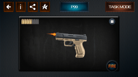 一个逼真的枪射击模拟器应用程序,近50种不同的枪支武器供您选择!从手枪,猎枪,突击步枪,狙击步枪和机枪等挑选你最喜爱的武器。下载这个枪射击模拟应用程序,你可以和朋友一起玩这个射击游戏。特点:-近50种不同的武器可供选择。-逼真的枪射击和开火动画。-任务模式:瞄准目标射击,看谁在90秒内更多地射击目标。-了解枪支信息,包括枪名、起源、重量、弹容量等。-子弹射击完,可以重新装载子弹。-在facebook上与你的朋友分享。枪支选择:-9mm手枪P99,德国-9毫米手枪Colt050和沙漠之鹰,美国-7.65mm手枪,CZ83,捷克-7.62毫米手枪,TT33,俄语-5.56mm狙击步枪XM8,美国-9mm突击步枪AUG,德国-7.62毫米霰弹枪USAS-12,韩国-许多其他武器。枪射击应用与你的朋友进行战争游戏。现在去下载吧!