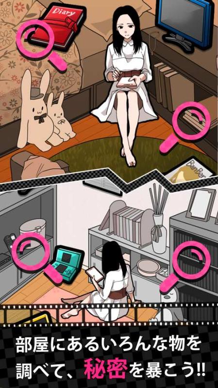 日本厂商WTeam的手机游戏《从交友网站开始的恋爱(出会いアプリ始めました-脱出系恋爱ゲーム)》是一款将「恋爱」与「逃脱」结合的新感觉手机游戏。玩家需扮演使用交友应用的女性,揭露登场男性的真面目。不仅要在对话中作出回应,还可以在房间中探索,通过「电脑」「杂志」等搜寻情报。根据选项不同,会有多种结局。“感觉最近心动的感受不足呀”这么想着的我,迅速下载了一个交友App,等着那个帅气的“他”的到来!不过,等等!好像不会有天上掉馅饼这种事情存在的吧!そう思った私は早速マッチングアプリをインストール!すると来るわ来るわたくさんのイケメンたち!でもちょっと待って!世の中こんなにうまくいくはずがないよね?===============アプリの内容================部屋に隠された証拠を見つけて、相手の正体を暴こう!脱出ゲームと恋愛ゲームが融合した新感覚なゲーム内容!あなたはエンディングまで辿りつくことができるのか?==============================================================アプリの情報================主人公の部屋の中に隠された証拠を見つけよう!手帳や雑誌、ノートなど…そこにはきっとあなたが見つけてる証拠があるはず!?=========================================================こんな人にオススメ=============?ゲスな人?プレイボーイ?暇な時間にドキドキしたい人?日常に刺激が足りない人?