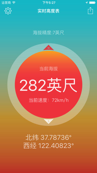 这是一款外出旅游、户外达人的必备的软件,让你以最快的速度获取到所在地的海拔、GPS位置、方向和速度等信息。