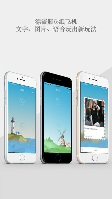 嗯哼品牌就是给大家带来了不一样的社交方式,这里你可以看到好玩的漂流瓶和纸飞机功能,随时随地邂逅那个她(他)。