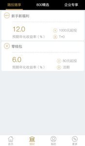 800理财是一款专业的财富管理平台,800一直致力于为用户提供多维度财富管理服务,它的产品包括浮动收益、类固定收益、海外投资等以满足中高端投资者日益增长的理财需求。是一款非常专业的投资理财平台!