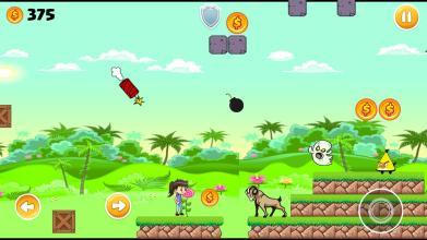 这个游戏的过程是相当容易和简单,任何人都可以玩它,你需要做的是避免从巨大的蜜蜂和蠕动的鹿的攻击,以使它到最后。此外,在游戏中,你必须收集尽可能多的硬币,你可以得到一个奖金...和记住,如果你被触动的火焰或炸药抛出的动物,那么你会死了,重新开始。女孩冒险是一个每个人都喜欢竞争和挑战的游戏,因为它包含许多,除了游戏的美妙的图形,给它完美的兴奋,玩它的游戏。在这个游戏中,你还可能会发现愤怒的小鸟的字符或一些可怕的鬼魂。大胆的女孩艾伦不得不到城堡,她可能会碰到有趣的猴子试图阻止她使用香蕉,但她不会放弃她的目标,回到她的现实世界。