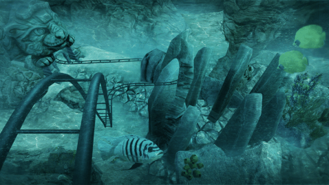 感觉如何过山车,通过高速和低速弯道的轨道上行驶,你观察古隐寺的详细图像。跑过去的树木和火把为您以超高速WIZ通过!这么多的细节来观察...是玛雅庙宇,或许由一个外星种族留下?认为没有时间,旅程继续骑入黑暗和可怕的洞穴,当你穿过subterrane享受重力和快速的曲线感。最终你会潜入水中和处理,以一个惊人的水下体验。以全动画详细的热带鱼,因为他们生活的水下生活。当你认为虚拟现实(VR)的海上生活是所有关于美丽的珊瑚和五颜六色的鱼,你会看到你的过山车路径上的饥饿的鲨鱼成为一个危险的预测漫游公海。
