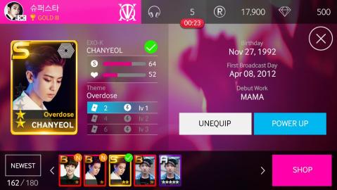 ExcitingnewmusicgamewithyourfavoriteartistsfromS.M.ENTERTAINMENT!MakeyourfavoriteartistthebestK-POPStarwithSUPERSTARSMTOWN!?SUPERSTARSMTOWN?-32artists/GroupsfromS.M.ENTERTAINMENT-290+songsinvariation.-1,500+cardstocollect-Competeotherusersin12differentleagues?MainFeatures?-CardBooksystemadded.Checkyourowncards.-3differentlevelsofdifficultyforeachsong.(EASY/NORMAL/HARD)-Starcardsthatcanbecollected/enhancedtogetmorebonuspoints.-Weeklyhighestscorestodetermineyourleaguerank-12differentleaguesdeterminedbyyourweeklyleagueranking.?FeaturedArtists?BoATVXQ!SuperJuniorKyuHyunSuperJunior-D&EM&DRYEOWOOKYESUNGSuperJunior-MHenryZhouMiGirls'GenerationGirls¡¯Generation-TTSTAEYEONTIFFANYSHINeeTAEMINJONGHYUNf(x)AMBERLUNAEXO-KEXO-MRedVelvetNCTU-The7thSenseNCTU-WITHOUTYOUNCT127NCTDREAMLAYEXO-CBXSMTOWN-----------------¡ùVisualSettingIfyouexperiencelagsinthegameyoucanchangeyourvisualsettingtolowresolutionforbetterperformance.¡ùIfyouhaveanyinquiriesorrequireanyfurtherinformation,pleasecontactusat.E-MAIL:support.superstar@dalcomsoft.com-MASTERLEAGUEadded-ToggleButtonadded