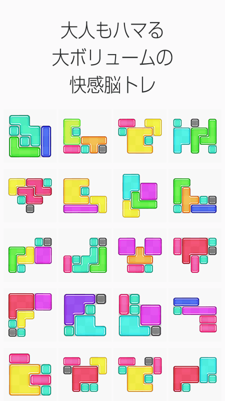 ◆大人気「ぴたぽん」がシルエット型に進化!あなたの脳はカチコチにサビついていませんか?頭をフル回転させてプニッと楽しく脳トレしましょう!【ルールは超簡単】パズルをドラッグしてハコにピッタリはめるだけ!シンプルだけど癖になる!つめこみパズルぷるるん触感が超爽快!【ずっと遊べる1200ステージ】レベルが進むとだんだんと難しくなるステージわからない時はヒントもあるよ全部クリアできれば君はつめこみマスター!子供から大人までハマること間違いなし!全ステージ、すべて無料で遊べます。あなたはどこまでクリアできますか?不具合修正等を行いました。引き続きよろしくお願いいたします。