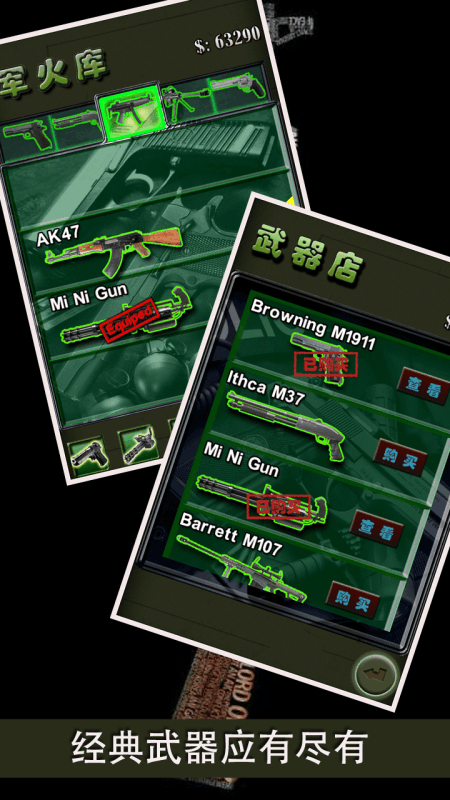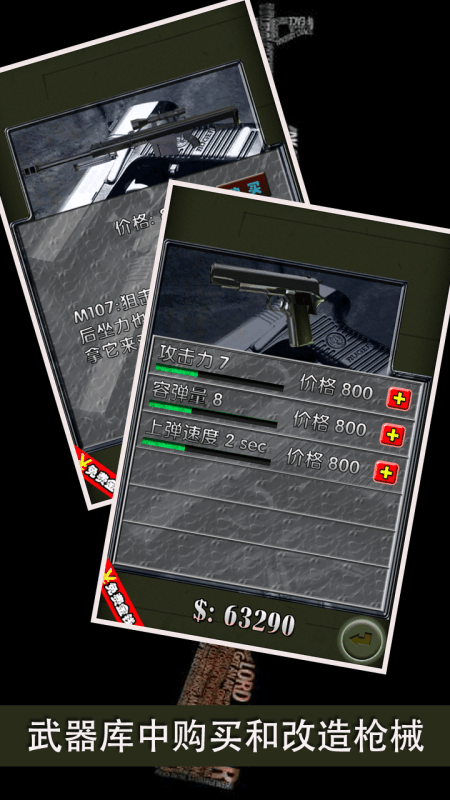 ★基本玩法:点击敌人进行射击可以切换武器进行攻击可以携带3种武器【R】按钮补充弹药游戏中可以静音游戏中可以暂停★如何进阶:在【武器库】中升级你的枪械。在【商店】中购买火力更强的武器★小技巧:每2拨敌人之间补充弹夹中的弹药每一个管卡获得尽可能的战斗得分(3星最高),你会得到更多的金钱。优先攻击移动速度快,距离你最近的敌人。集中火力消灭一个敌人,再将把心对准下一个敌人。