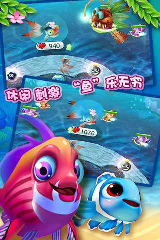 2012最具创意的大鱼吃小鱼网络版。真正的全球多人在线游戏,真正的3D即时对战游戏,真正的适合每一个游戏爱好者的休闲游戏。每个玩家都可以扮演一条小鱼去'吃掉'别人,你可以和家人、朋友一起在海底世界中嬉笑游戏。多种游戏模式让玩家能充分体验追逐与躲避的乐趣。