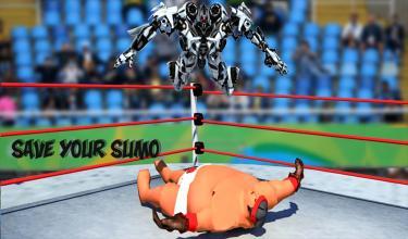 ?终极相扑冠军与环战斗英雄机器人比赛。