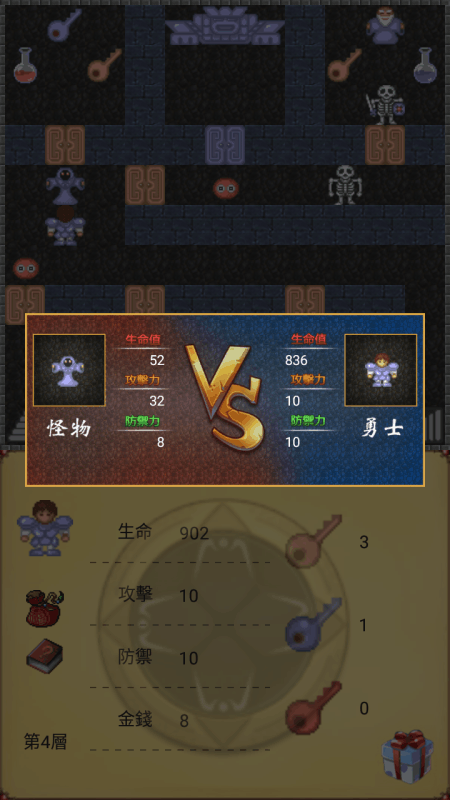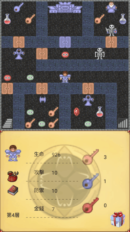 1.魔塔50層是一款經典的像素RGB打怪遊戲。2.遊戲必須動腦子計算才能贏得最後的勝利。3.遊戲中有各種寶藏助玩家通關,和每個人的對話都要仔細看,有可能就有寶藏信息以及通關祕籍。4.方向鍵移動人物,撞到怪物自動打怪,還不能打敗的則不能通過。走到物品上自動拾起獲得,黃、藍、紅門碰撞打開(會耗費相應顏色鑰匙)。5.機關門(花門和鐵門)在打敗指定的怪物後自動打開,如2樓6個鐵門在打敗兩個中級衛兵後自動打開。6.關鍵詞:魔塔、魔塔50層、RGB遊戲去除好評模塊