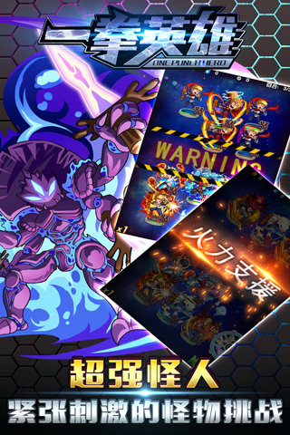 《一拳英雄》源自日本著名漫画,人物角色和场景百分百还原动漫剧情的手游大作。游戏讲述了原本是一名普通人的光头埼玉,为了追寻自己想要成为英雄的梦想,通过加入英雄协会拼命锻炼和晋级,终于脱胎换骨获得了最强的力量,与众多英雄一起开始了对抗各种怪人以及灾难的生活。战斗全场震屏大招、轻松一拳通关;游戏场景通过3D分镜技术,实现空中俯瞰整个战斗,一种全新的视觉体验;再加上著名CV百分百还原动漫配音,游戏操作轻松、玩法多样、轻快流畅,满心欢喜邀你前来体验!