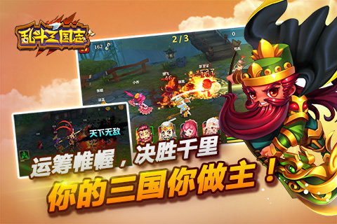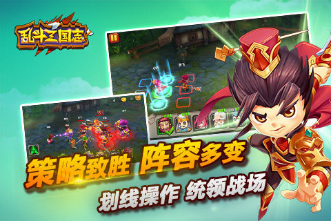 《乱斗三国志》是一款三国题材的大型卡牌养成类手游。游戏采用世界领先的游戏引擎unity3D开发,以三国历史文化为背景,新一代布阵划线式战斗,超强的策略性和即时性,让你掌握不一样的战场主动权。游戏以养成为主,收集为辅,提供众多养成方式供您选择,武将获取途径更多更容易。独特武将轮回变身,一骑当千英雄模式,策略布阵、即时战斗换位,清新Q版画风,真3D视角展示,带你畅游不一样的三国历史!