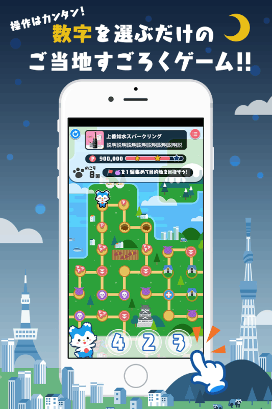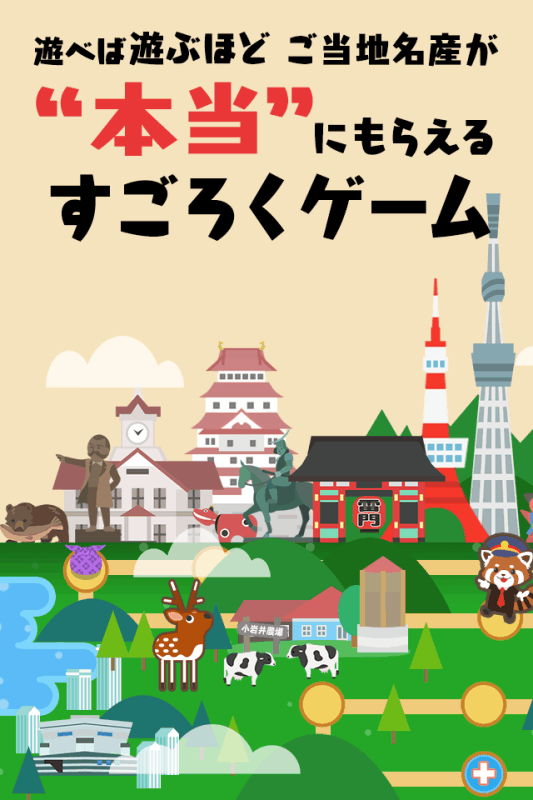登録ユーザー数200万人突破!■ごちぽんとはすごろくで遊ぶだけで、本物の名産品が家に届く!?話題沸騰中の【完全無料】すごろくゲーム「ごちぽん」が遂にアプリとなって登場!毎日行われる抽選では、これまで約10万人がご当地の名産品に当選!…………………………………………………………………………………………■マカオ観光局とのタイアップしました!■農水省和食の保護継承?推進事業との協力イベントを実施しました!■東京ドーム?フジテレビジョン「ふるさと祭り」とタイアップしました!■環境省?全国理容連合会「クールビズ」キャンペーン特別イベントを開催しました!■雑誌「GLOW」(宝島社)のアンケートでよく遊ぶアプリTOP3に選ばれました!■テレビ東京「ハライチの神アプリ@隆盛紀-ONLINE-」で紹介されました!■福井テレビ「おかえりなさい」で紹介されました!■日本農業新聞で紹介されました!■福井新聞で紹介されました!■市ヶ谷経済新聞で紹介されました!■神奈川シティリビングで紹介されました!■新潟県魚沼市公認『ご当地怪獣』とコラボイベントを開催しました!■神奈川県川崎市の協力を得て「川崎市イベント」を開催しました!■福井県『福丼県プロジェクト』とコラボした特別イベントを開催しました!■宮城県仙台市と国連防災世界会議実施を盛り上げる地域イベントを開催しました!■高知県観光特使のご当地アイドル「はちきんガールズ」と特別イベントを開催しました!■人気テーマパーク「よみうりランド」と特別イベントを開催しました!など他多数…………………………………………………………………………………………【ごちぽんの遊び方】■日本全国をすごろくで旅しよう!かわいいキャラクターたちと一緒に日本を旅しよう!キャラクターたちは「一芸」を使って旅をサポートしてくれるよ。一緒に旅にでてレベルアップすれば、難しいステージも簡単に!■「ごちコレ」カードを発見!日本各地を旅して、ご当地の魅力「ごちコレ」カードをゲット!メジャーなものから地元の人しか知らないマニアックなものまで、面白いご当地情報満載!!ユーザーの皆さんの投稿で情報はどんどん増えていきます。■「ごちコレ」が本物の名産品に…!?手に入れた「ごちコレ」の中には、本当の賞品が盛りだくさん!ゲームをするだけで簡単に応募できます。魅力的な「ごちコレ」が本当に家に届いちゃうかも!「スイートポテト当たったー!芋大好きなのでうれしい」(20代/女性)「カレー当選しました!凄く欲しかったので感激です!」(30代/男性)「始めて1か月もたってませんが、2つ当選しました!」(30代/女性)(掲示板の投稿より)+++【価格】+++アプリ本体:完全無料※有料アイテムは一切ありません。【アプリが止まってしまう場合】一部の端末で、ゲームが重たい、ゲーム中にアプリが強制終了するといった現象が発生する場合がございます。その場合は、以下をお試しください。?ゲーム開始後の画質設定を「サクサク」にする。?Androidのバージョンを5.0以上にアップデートする。【非対応端末について】ご利用中にアプリが落ちてしまうことのある一部端末を非対応端末とさせていただいております。非対応端末につきましては、お手持ちのブラウザよりWEB版をご利用頂いた方が快適にプレイして頂けます。「ごちぽん」でご検索の上、WEB版をご利用頂ますようお願い致します。【今回のアップデート内容】ごちぽんをご利用頂きましてありがとうございます。今回のアップデート内容は以下のとおりとなります。?軽微な不具合の修正を行いました。今後ともユーザーの皆様にご当地の魅力をお伝えできるよう努めてまいりますので、よろしくお願いいたします。