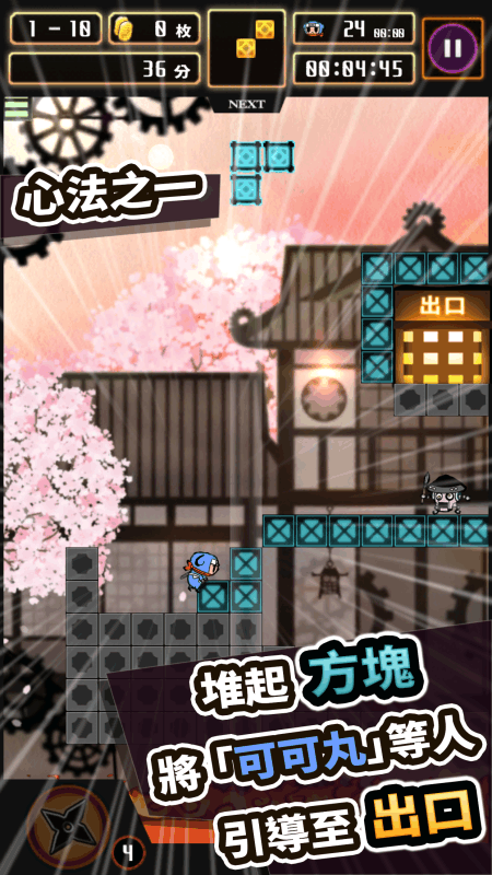 ◇◆◇◆◇新感覚パズルゲーム到来!◆◇◆◇◆簡単操作で新しい体験ができる!ブロックを操作して積んだり押したり……忍者『ここ丸』をゴールまで導こう!◇◆◇◆◇◆◇◆◇◆◇◆◇◆◇◆◇◆◇◆◇◆◆ストーリー時は戦国。あるところに、困った人を見ると放ってはおけない優しい殿がいました。殿は困った人を見ると、後先を考えず、お金を貸してしまったり、備蓄の食糧を分けたりしているので、いくら城に住んでいるからと言っても貧乏な生活を強いられているのでした。その殿の国で暮らしていた姫は、ある日あまりの極貧生活に本当に嫌気が差し、城を飛び出してしまいます。そんな姫を連れて帰るようにと指令をうけた忍者『ここ丸』は、指令通り姫のもとへと向かいますが、姫に言いくるめられ、一緒に旅に出ることに……貧乏な生活から一発逆転できるかもしれない、戦国のどこかにあると言われている伝説のカラクリを求めて。◆遊び方ブロックを積んだりして、自動で進む忍者『ここ丸』の手助けをしよう!ここ丸はブロックの1段だけ登ることができます。ゴールに向けてどう積んでいくかはあなた次第!なるべく早くゴールへ到達させましょう。ブロックは積むだけではなくて、ここ丸を押して移動させるのに使ったり操作しているブロックに乗せたりすることもできます。◆スコアアタックステージクリアのスコアで友達と対戦!!早くクリアしたりアイテムを取ったり、あなたなりの進め方で、ランキング上位を狙おう。いつも「忍ぱず」をご利用いただきありがとうございます。?キャラクタ開放条件の調整を行ないました。?その他、各画面の調整など。
