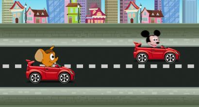 惊人的卡通人物的孩子赛车汤姆和老鼠米奇是一个快节奏的游戏中赛道的神奇的幻想汤姆和世界杰里比赛专为孩子们设置!