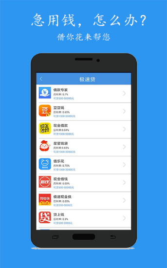 花乐宝借款app是一款优秀的网上借贷神器,这里有着丰富的网络借贷产品。用户随时随地都能够借到钱,无抵押贷款人人都能借。喜欢的朋友赶紧下载体验吧。