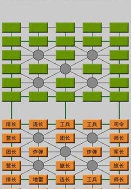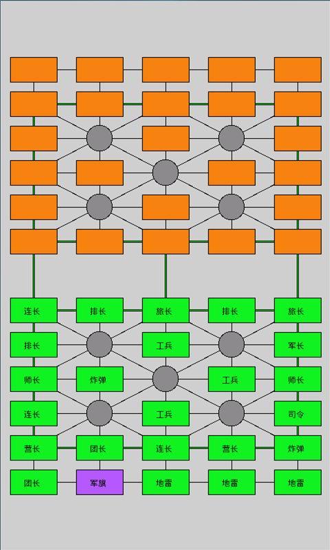 在游戏过程中,棋子力量从大到小排列顺序为:司令军长师长旅长团长营长连长排长工兵,工兵可以消灭地雷,地雷无法行动,炸弹可以消灭一切棋子。棋盘上圆圈区域为安全区,在安全区的棋子不会被消灭。相信聪明的你已经很熟悉军棋的玩法了,指挥你的军队去战斗吧!