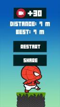 将跳转向上和向下的英雄蜘蛛侠儿童。