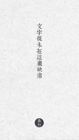 叁行是一款竖排中文交流社交的应用软件,让尽情的享受中文竖版美感以及交流带来的乐趣,精妙的字句,动人心扉的词曲,一横一竖,短短长长,一撇一捺,浅浅深深,入你心!