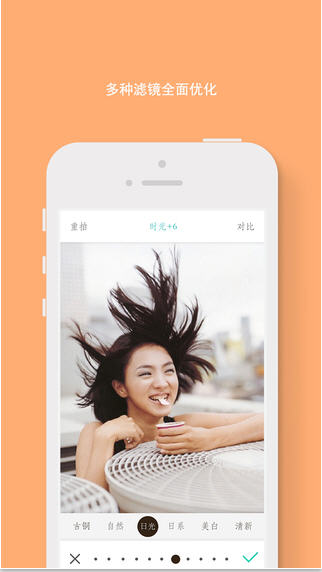 人物相机应用特色 1、小清新的界面风格,十分养眼; 2、多种强大的滤镜特效; 3、一键自动智能美化图片; 4、特色的头像染发系统。