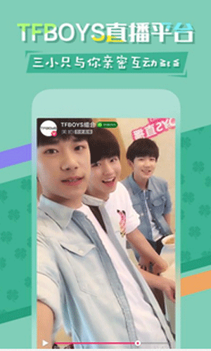美拍app是一款专业p图软件,TFBOYS直播精彩回放等你来看,与超人气少年三小只亲密互动接触,粉丝们可点亮属于你的四叶草专属图标,还有螃蟹、汤圆、千纸鹤等图标!