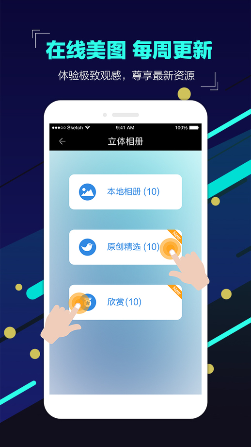 1.新增幻灯片播放功能,没有蓝牙手柄的用户也能通过VR眼镜自由浏览您想欣赏的立体照片。