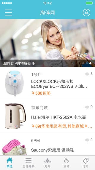 淘伴网2.2特色功能 1、实时查看国内知名网站的特价商品的和一些促销活动。 2、手机每天登陆签到获得福利优惠活动。 3、可以锁定货品。随时关注打折信息。
