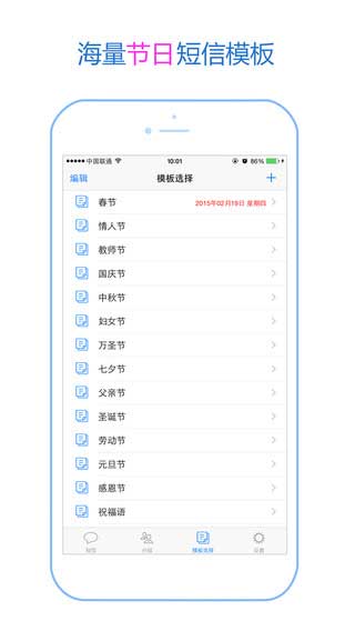 短信群发特色: 1、短信群发简单快捷,同一个页面编辑,30秒轻松搞定。 2、自动识别已发成功和发送失败信息,确保祝福一一到达。 3、丰富的信息模板供你选择,包您找到满意的信息。 4、短信签名、输入法切换,所有能方便的地方全部给你最大的方便。 5、所有节日祝福信息应有尽有,软件会随着节日而做出更新。