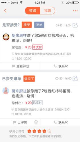 蹭饭IOS版优势 1.为没有时间做饭的人提供邻居做的饭菜 2.给做饭的邻居提供一个额外的优势 3.操作简单,做饭用户上传菜品,吃饭人挑选即可 4.饭菜由双方协定送饭或上门,支持快递 5提供一个以餐饮为中心的讨论社区
