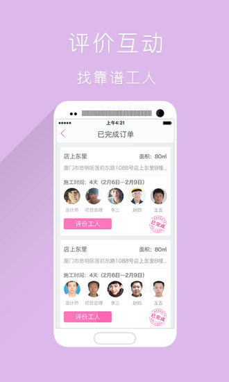 美家帮工人端让所有参与装修施工的工人全都能够更加的各尽其责,让整个装修过程更加透明化管理,高效科学的进行装修。