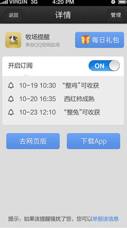 QQ提醒4.1.2更新内容: 增加了全新的视觉体验 增加了关怀提醒功能,可以分享给好友 优化了运行卡顿的问题 修复了游戏信息闪退的问题 修复iPhone的兼容问题