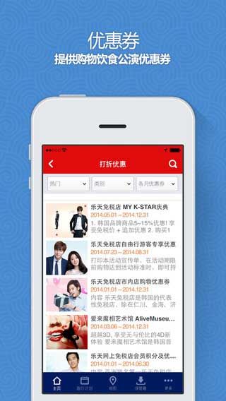 韩国自助游app1.0.9特色: 1、提供购物饮食公演优化券。 2、一次性比较酒店预约网站。 3、提供中文地图及指路服务。 4、通过推荐旅行日程可轻松制定旅游计划。