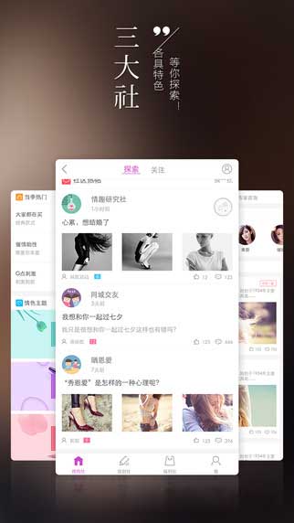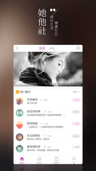 她他社是一个两性私密的情趣社区应用软件,每天都会为你推荐劲爆热辣的情趣资讯,让你们沉浸在爱的社区,还能进行即时互动,以圈会友,励志打造全球情趣用品第一品牌!
