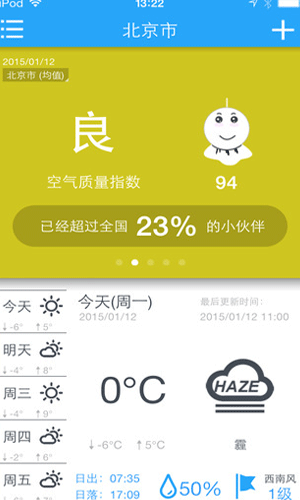 空气卫士是一款快速为你获得全国空气质量的手机应用,同时还为我们提供天气预报,非常的方便实用,让你的出行和健康指数得到提高,欢迎下载!