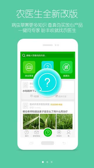 农医生是一个移动互联网农害远程诊断问答的应用软件,关注民生,专注于远程诊断病虫草害,营养失调,从种子到收获等等问题,帮助你收获更加丰富,而且免费的哦!