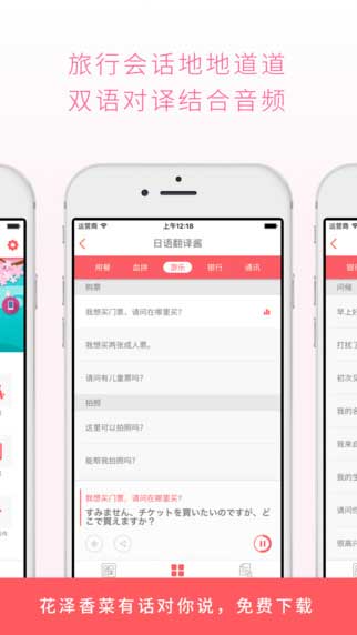 日语翻译酱是一个专业的翻译应用软件,内含了各种场景模拟,让你hold住任何的对话场景,帮助你消除一切的语言上的障碍,让你的旅程无忧,轻轻松松玩转日本哦!