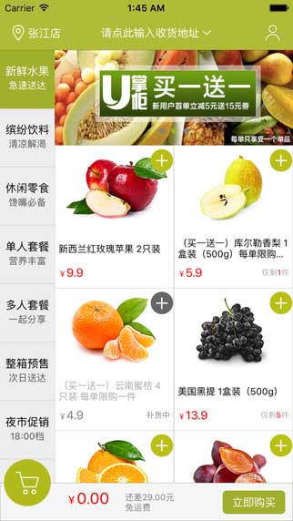 U掌柜是一个新鲜水果速配的应用软件,建立有专业化的采购团队,独特的分布式冷藏以保证水果新鲜的品质,让顾客能够随时都买到水果,并且实现了享受1小时快速送达的优质服务!