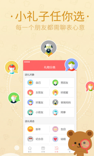 送个礼物1.0特色: 1、每日更新最新的精选主题,全球美物一网扫尽。 2、个性化为你推荐商品,分类精致,物品搜索更省时。 3、礼物清单随时收藏自己购物的记录,方便查看。